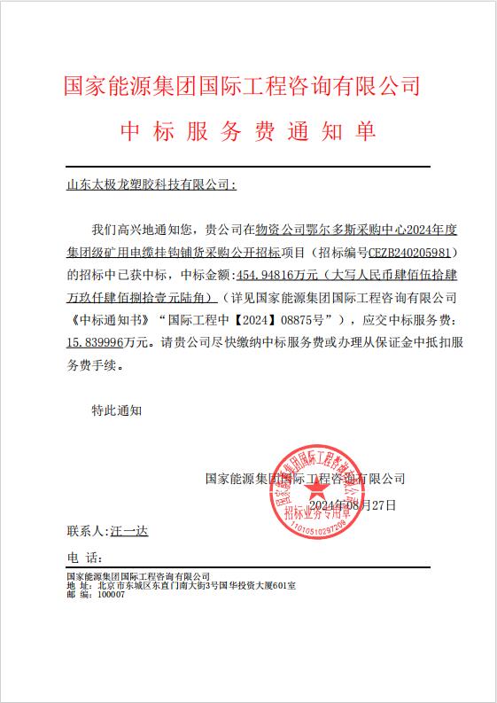 能源集團物資公司鄂爾多斯采購中心2024年度集團級礦用電纜掛鉤項目中標通知 -